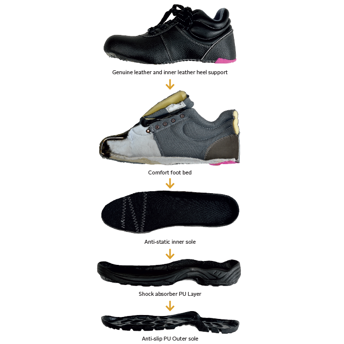 - Dual Density PU Sole – Strong yet flexible comfort.