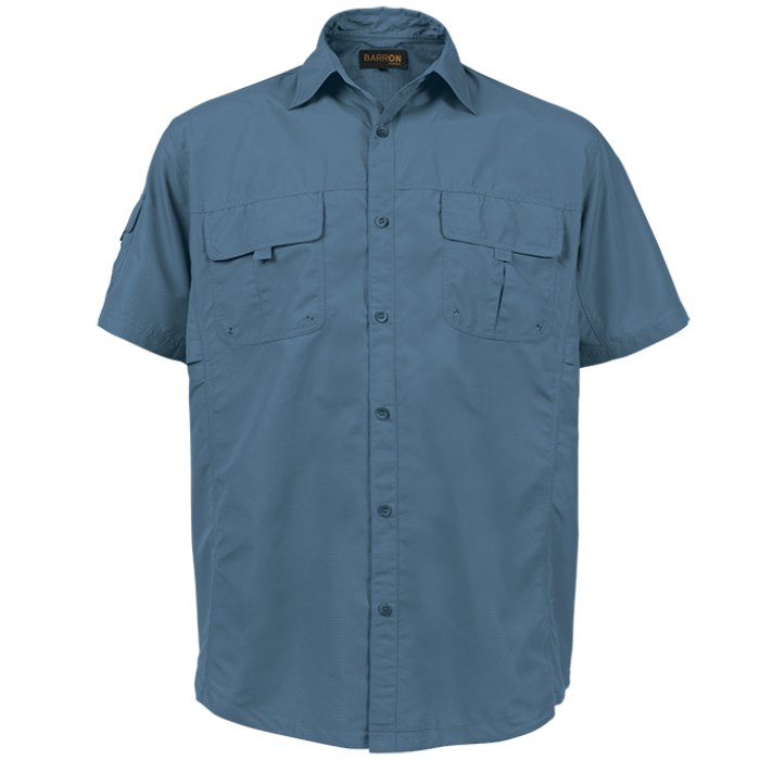 Cool and comfortable short sleeve shirt with underarm vents, ideal for farming, hunting, and outdoor activities. Designed with a generous cut and outdoor style, it features two chest pockets with Velcro flap closures and epaulets.