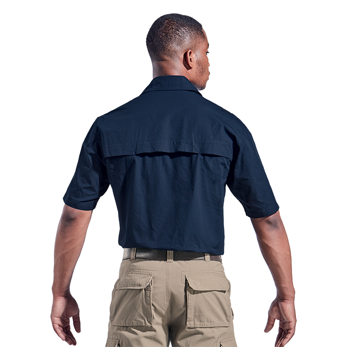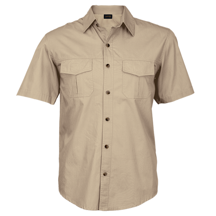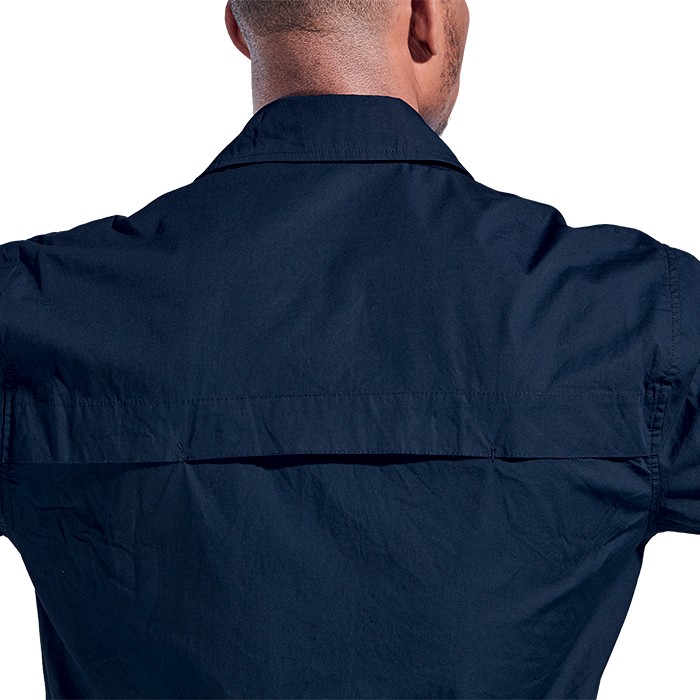 Cool and comfortable short-sleeve shirt with back vent, ideal for farming, hunting, and outdoor activities. Designed with a generous cut and outdoor style, it features two chest pockets with Velcro flap closures and epaulettes.